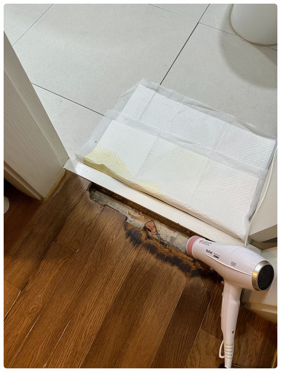북한산 월드메르디앙 아파트의 욕실 앞 강마루가 썩어가요. 이게 욕실문지방이 원인인가요?